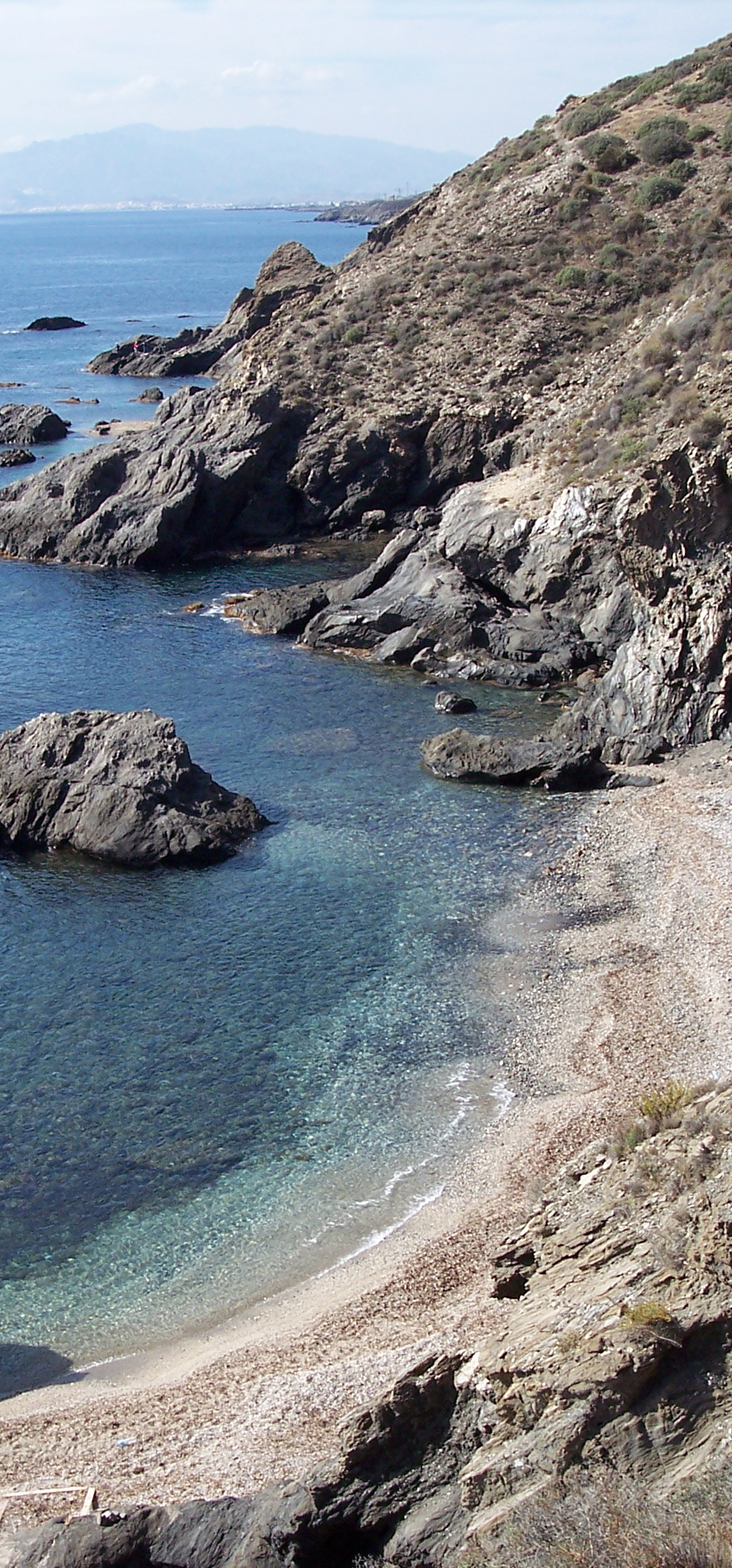 Desde ella,  puede admirarse el rudo juego de acantilados de Sierra Almagrera que descienden hasta el mar. Junto a ella, se pueden contemplar los restos de un antiguo embarcadero que tuvo una importante actividad minera.