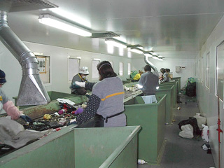 La fracción inorgánica (fundamentalmente envases) es sometida a un segundo triaje en el que se separan papel y cartón, PEAD natural, PEAD color, PET color, PET natural,